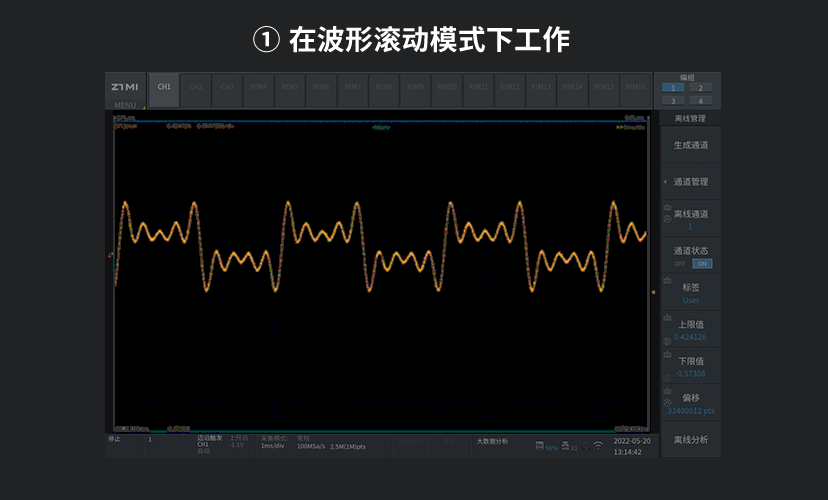 實時分析是ZDL6000示波記錄儀最智能的功能,它可以在滾動模式下實時對屏幕中的波形進行分析運算,它可以幫助用戶在長時間的重復(fù)性測試中,以自動化的機器測試代替重復(fù)性的人工測試,大大提高了測試效率。實時分析功能包含了波形時序分析、波形趨勢分析以及波形諧波分析。