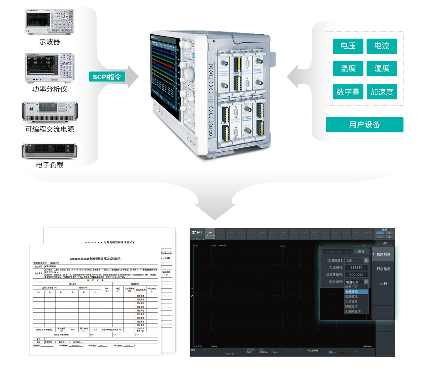 柔性ATE系統(tǒng)集成是ZDL6000示波記錄儀最大膽的功能。傳統(tǒng)的ATE系統(tǒng)和被測設(shè)備綁定,更換被測產(chǎn)品之后,原ATE系統(tǒng)中的設(shè)備和上位機軟件難以再次復(fù)用,柔性ATE系統(tǒng)集成則靈活、多樣、復(fù)用度高,我們正將一臺ZDL6000示波記錄儀改造成一套完整的測試系統(tǒng)大腦。