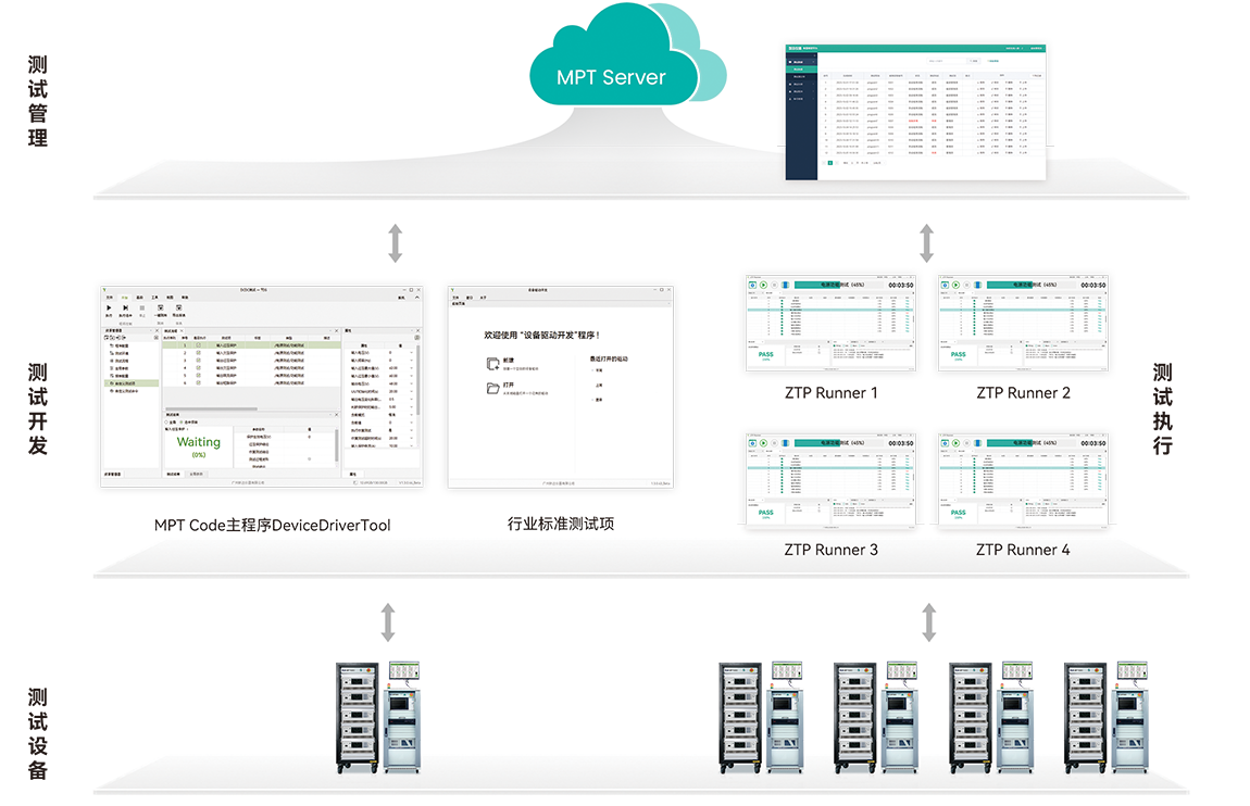 "MPT 智能化測試分析軟件"是廣州致遠儀器有限公司憑借自身在測量儀器、電力電子測試測量領域的深入理解與長久積累,開發的一套"產品自動化測試的系統級解決方案"。MPT 智能測試分析軟件由功能獨立的三層子程序組成:分別為測試設備層、測試開發與執行層、測試管理層。